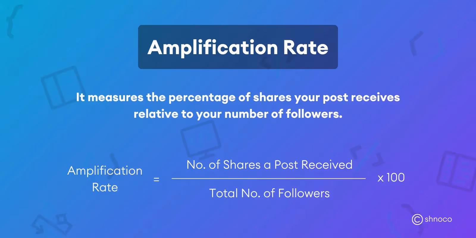The amplification rate measures the percentage of shares your post receives relative to your number of followers. In the words of Avinash Kaushik, author and digital marketing evangelist at Google, amplification is “the rate at which your followers take your content and share it through their networks.”