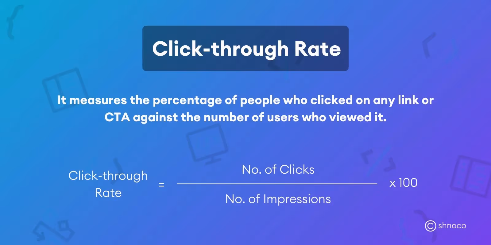 This metric indicates how many links clicks you've received on your ad in comparison to the number of impressions your ad received. It is used by Facebook advertisers to understand how their ad is driving traffic to their website and other landing pages.