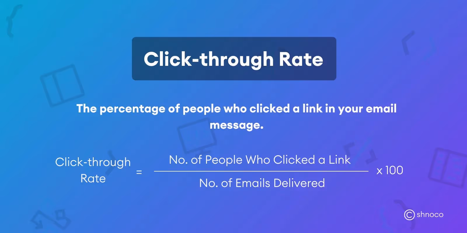 Let’s say you sent an email to 120 people and 20 of them got bounced, which means 100 emails got successfully delivered. Out of those 100 recipients, 25 of them clicked on your call-to-action (CTA) link. This way, your click-through rate will be: 25/100 x 100 = 25%