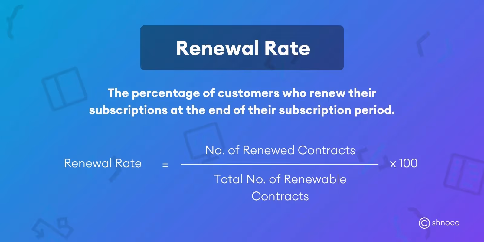 Renewal rate is the metric that measures the percentage of customers who renew their subscriptions at the end of their subscription period.