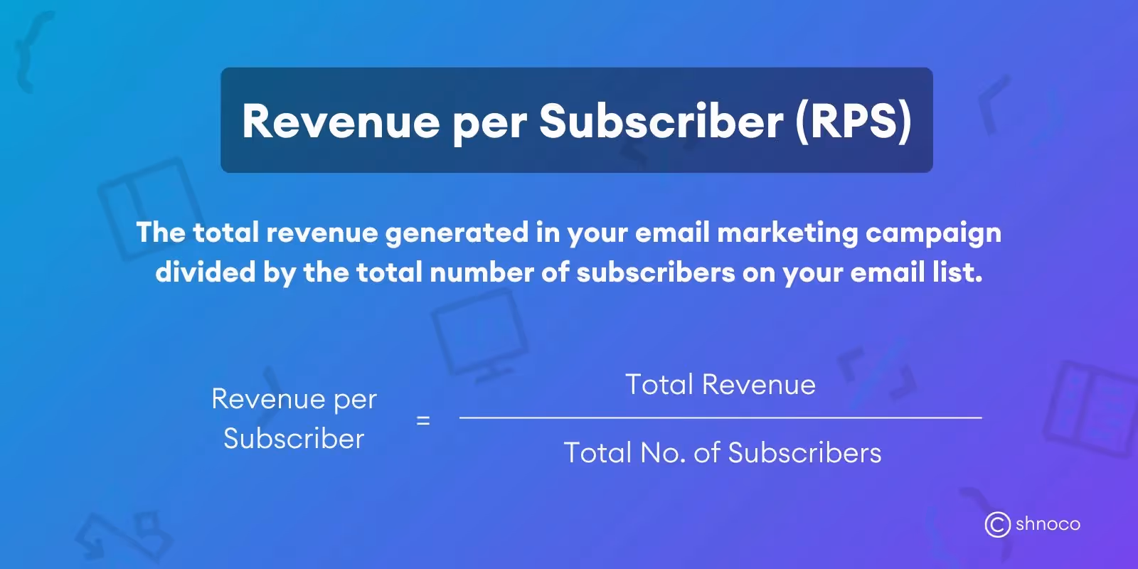 To calculate revenue per email subscriber (RPS), divide the ‘total revenue’ generated in your email marketing campaign by the ‘total number of subscribers’ on your email list.
