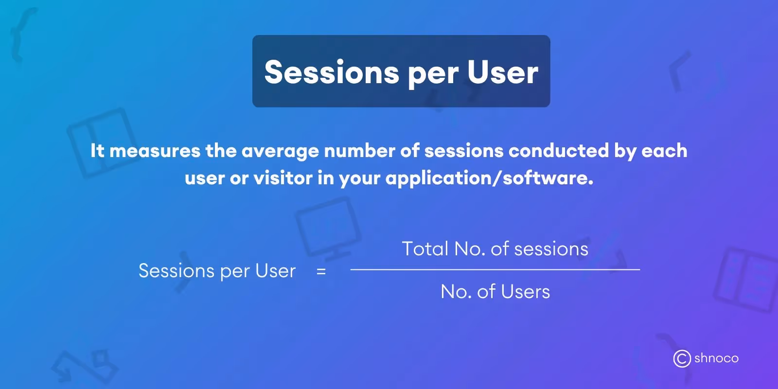 Session per user metric measures the average number of sessions conducted by each user or visitor in your application/software. This metric is used to determine how frequently the users return to your application or software.